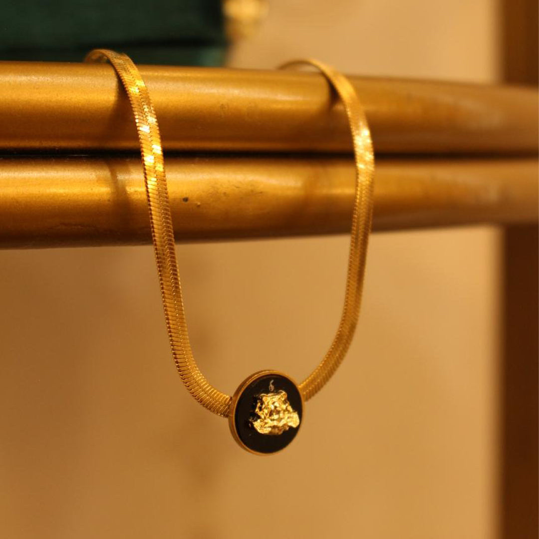 Channel your inner strength with our Snake chain pendant. Featuring a bold lion emblem set against a sleek black background, this piece symbolizes courage and power. The gold-plated chain adds a luxurious touch, making it a perfect statement accessory for any outfit. Crafted from durable stainless steel, this necklace is designed to stand the test of time, both in style and quality.