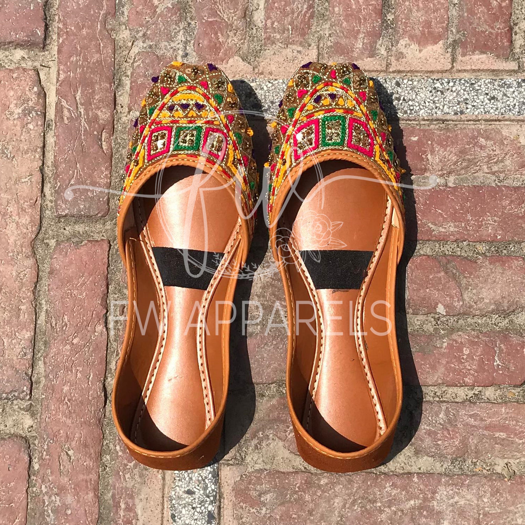 Gulmeena is a type of traditional handcrafted footwear from South Asia, often celebrated for its vibrant and colorful designs. Gulmeena is ideal for both casual wear and festive occasions, showcasing the rich cultural artistry of the region.