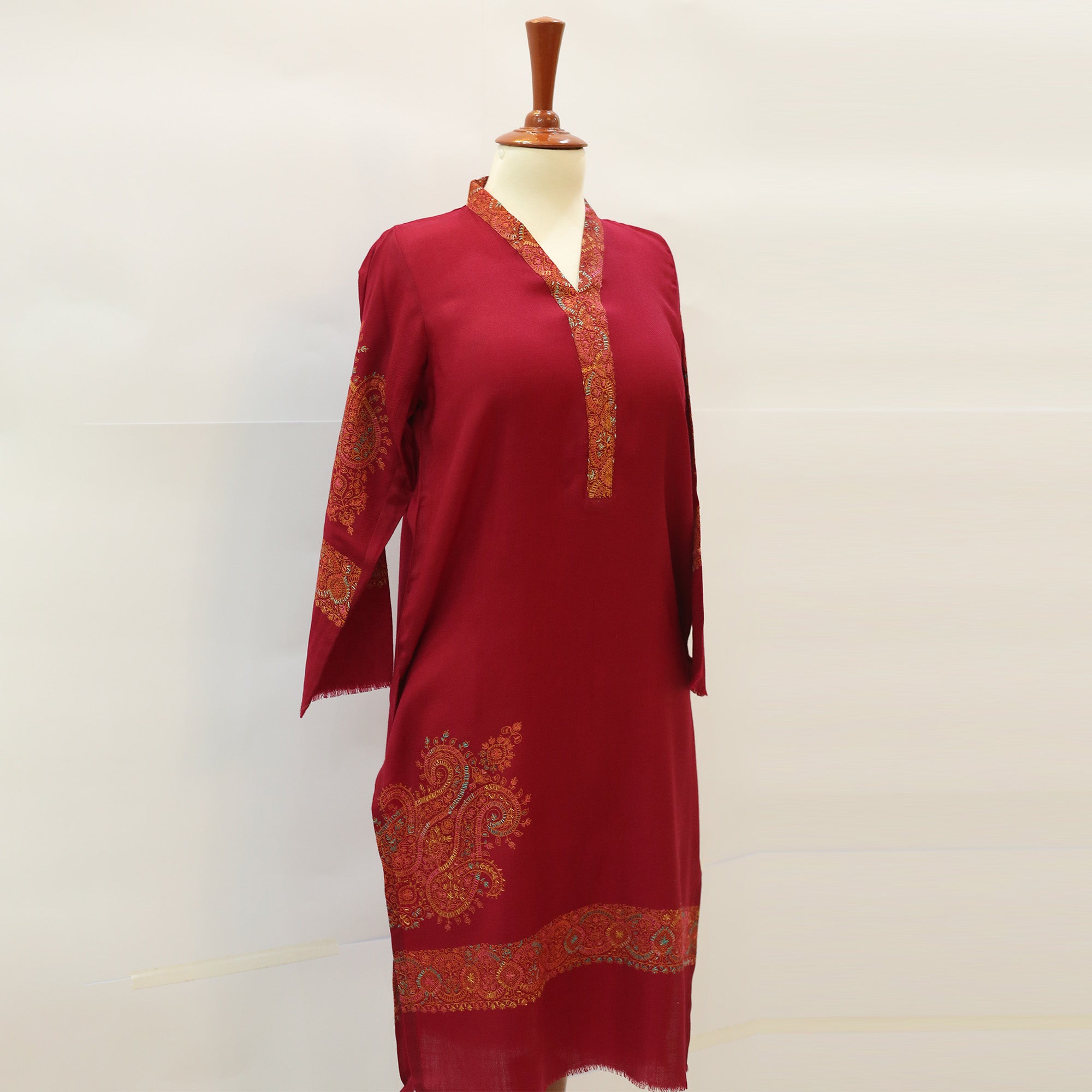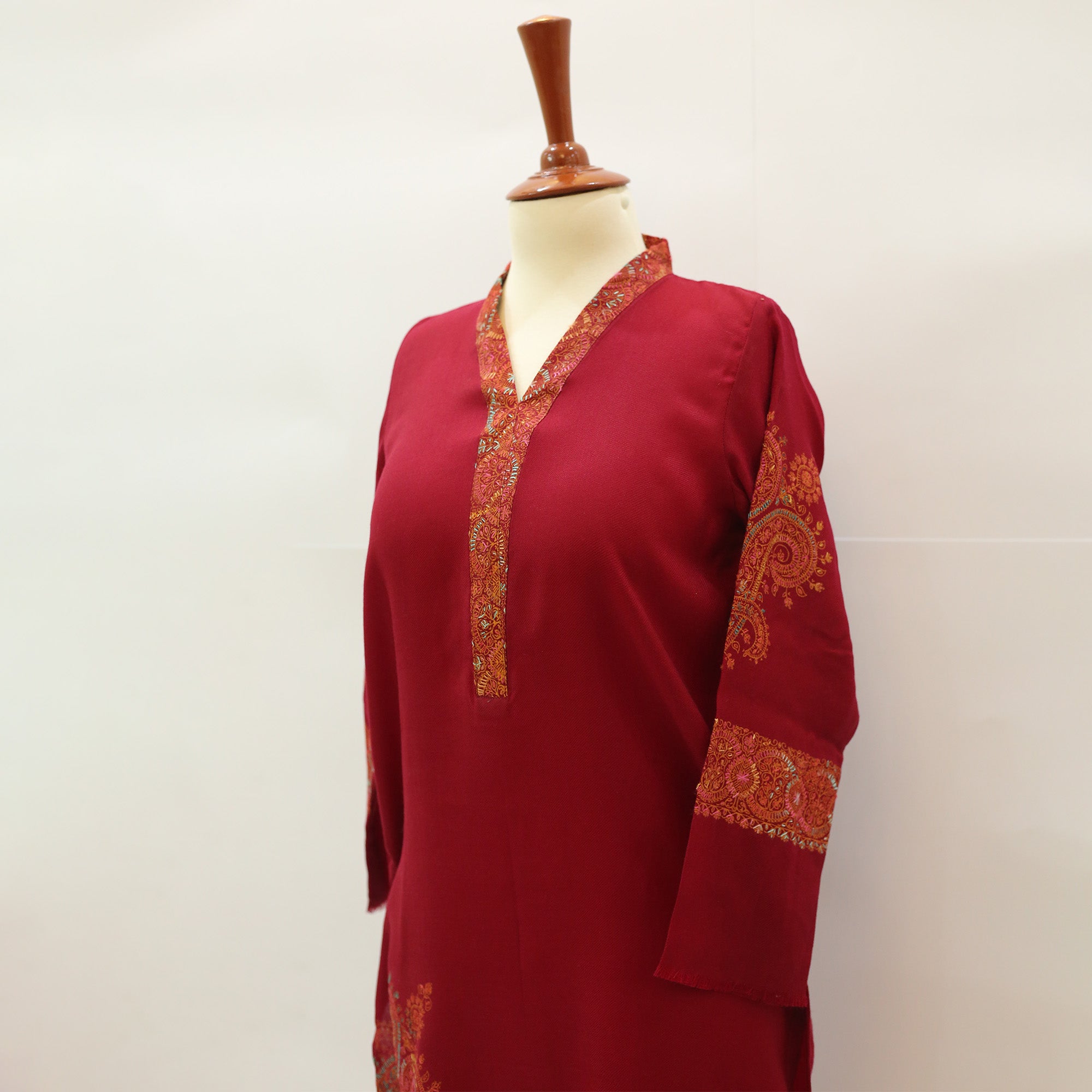 This hand-embroidered kurta features delicate, detailed stitching that adds a touch of sophistication to any outfit. Perfect for both festive and everyday wear, it combines comfort with traditional craftsmanship.