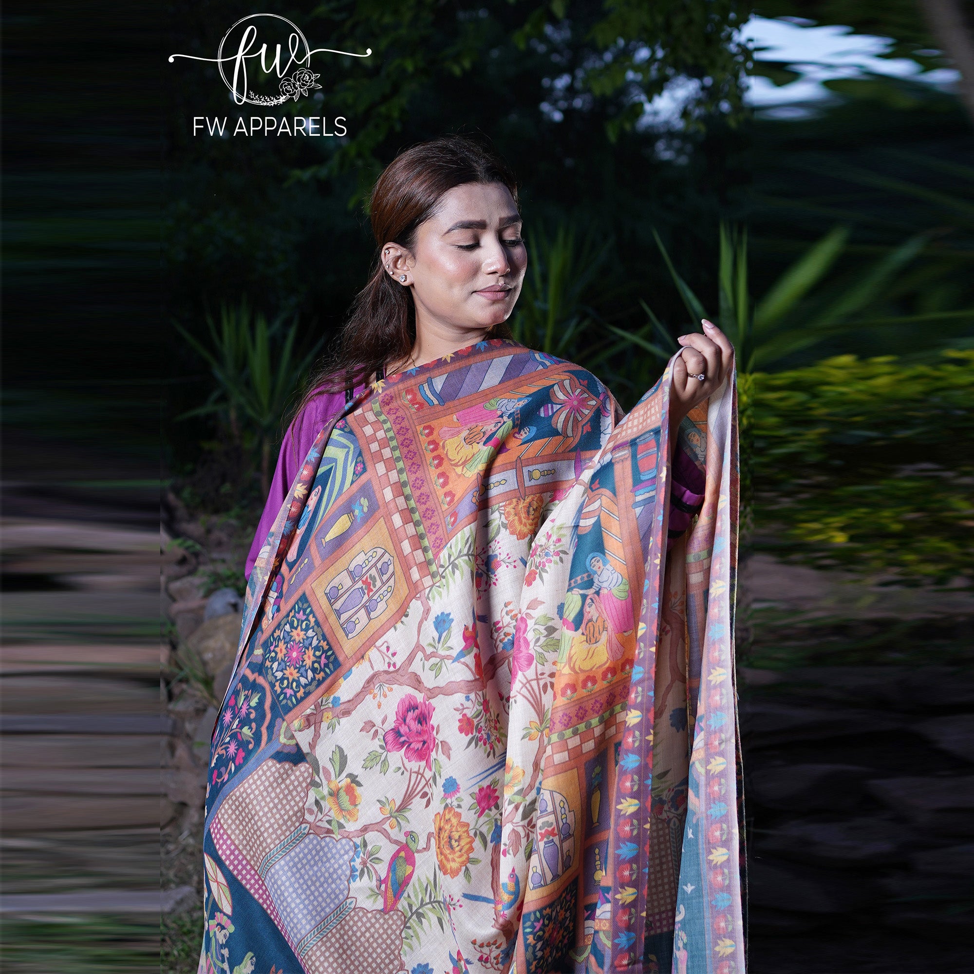 Enhance your wardrobe with this printed full-length pashmina shawl. Luxuriously soft and beautifully designed, it’s a versatile accessory for any season.